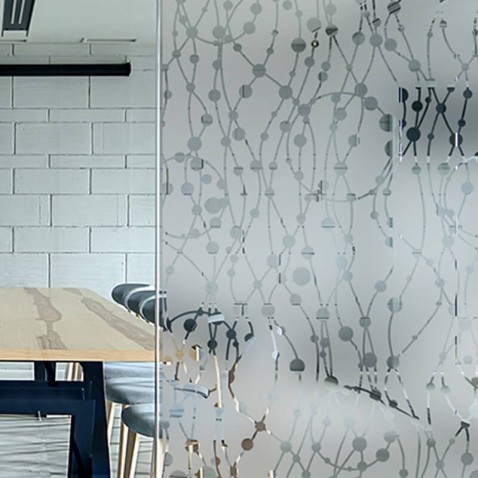 Conseil : le dessin du film dépoli représentant des motifs irréguliers étant réalisée sur la hauteur du film (152cm), adaptation parfaite sur tout vitrage inférieure ou égale étant réalisée sur la hauteur du film (152cm). Aucun raccord possible pour dimension supérieure à 152cm.