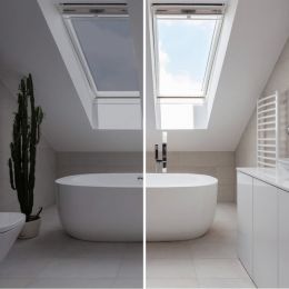 Protéger ses fenêtres de toit et ses Velux contre chaleur et contre le froid constitue un véritable enjeu pour le confort a l’intérieur des pièces équipées de fenêtres Velux. Très exposé aux rayons solaires et aux uv, le film solaire pour vitrage devient une réponse astucieuse et efficace pour améliorer la vie dans les combles de votre appartement. Sélectionnez le film adhésif anti chaleur pour vitrage pour velux pour créer une protection solaire performante de vos fenetres de toit velux. Au regard de la forte exposition des fenêtres de toit au soleil, nous préconisons vivement une pose de film solaire sur l'extérieur de votre vitrage de Velux.