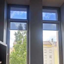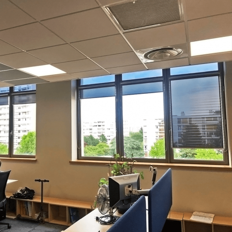Store enrouleur anti chaleur offrant une souplesse d'utilisation grâce au concept du store enrouleur adaptable selon votre besoin, tout en protégeant de la chaleur grâce à un film solaire et du vis-à-vis grâce à un effet miroir sur la face extérieure du store.
