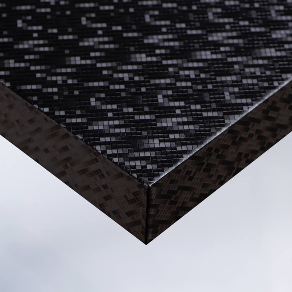 Certifié A+ au test C.O.V, ce film adhésif Métallisé Noir À Motifs, ne présente aucun risque de pollution intérieure et est donc autorisé pour une application en lieu public.