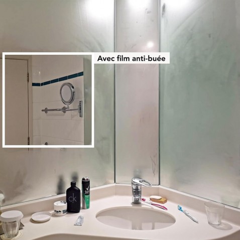 Film anti buée pour éviter la formation de buée sur vos miroirs de salle de bain, sur vos vitres de cuisine ou sur votre vitrine de magasin.