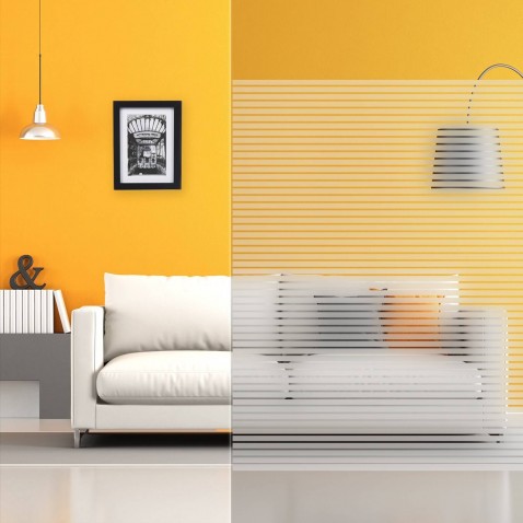 Conseil : les bandes décoratives alternées du film fenêtre Bandes dépolies étant imprimées sur la hauteur du film (152 cm), adaptation parfaite sur tout vitrage inférieure ou égale à cette dimension.