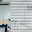 Film décoration Store avec des bandes horizontales blanc dégradé tramées de 43 mm.
