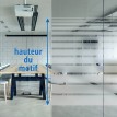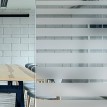 Entre chaque bande de film dépoli, un intervalle régulier de 35mm parfaitement transparent permet le passage de la lumière ou des regards.