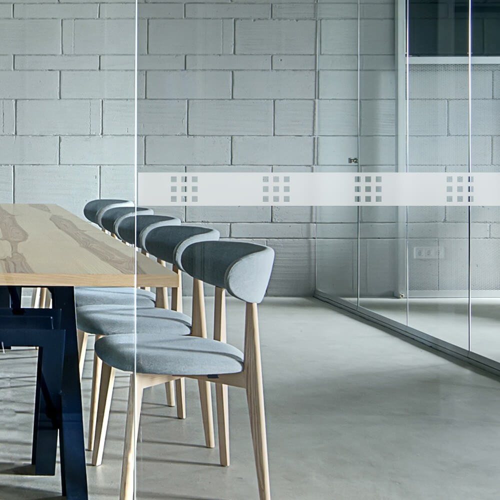 Film sécurité bande horizontales constituée de petits carreaux transparents, sur trame dépolie visible.