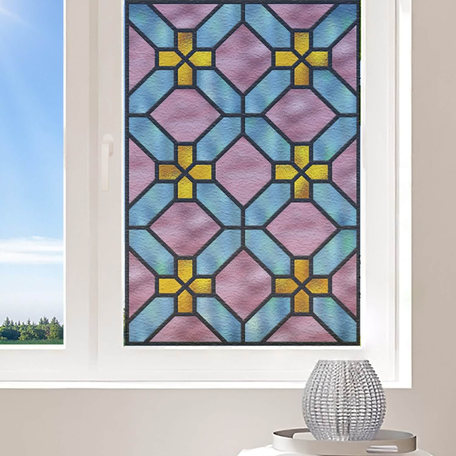 Film électrostatique effet vitrail - croisillons bleus - jaunes et violets