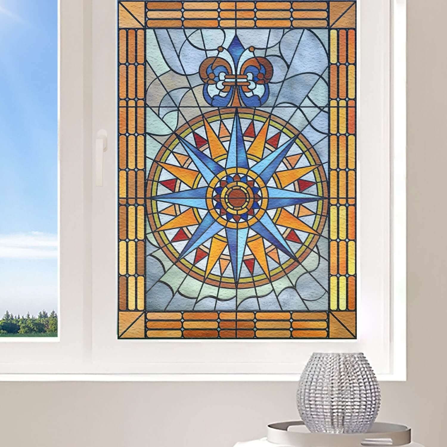 Film electrostatique motif Rose des vents pour fenêtre, vitre et surfaces lisses.