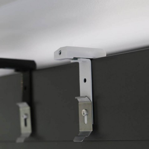Fixation murale fournie ou fixation sans perçage en option (lot de 2 équerres blanches laquées pour fixation sans perçage)