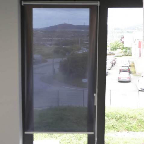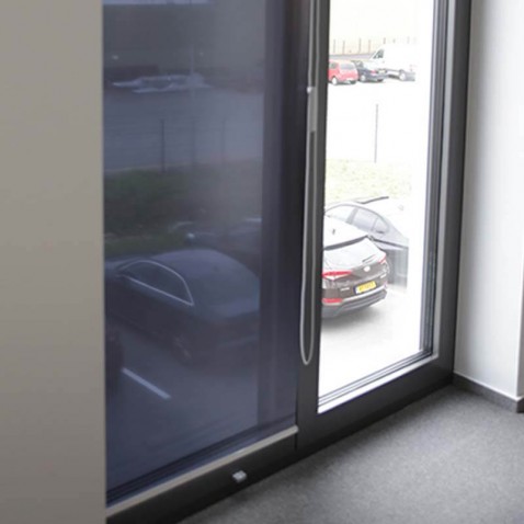 Store enrouleur anti chaleur offrant une souplesse d'utilisation grâce au concept du store enrouleur adaptable selon votre besoin, tout en protégeant de la chaleur grâce à un film solaire et du vis-à-vis grâce à un effet miroir sur la face extérieure du store.