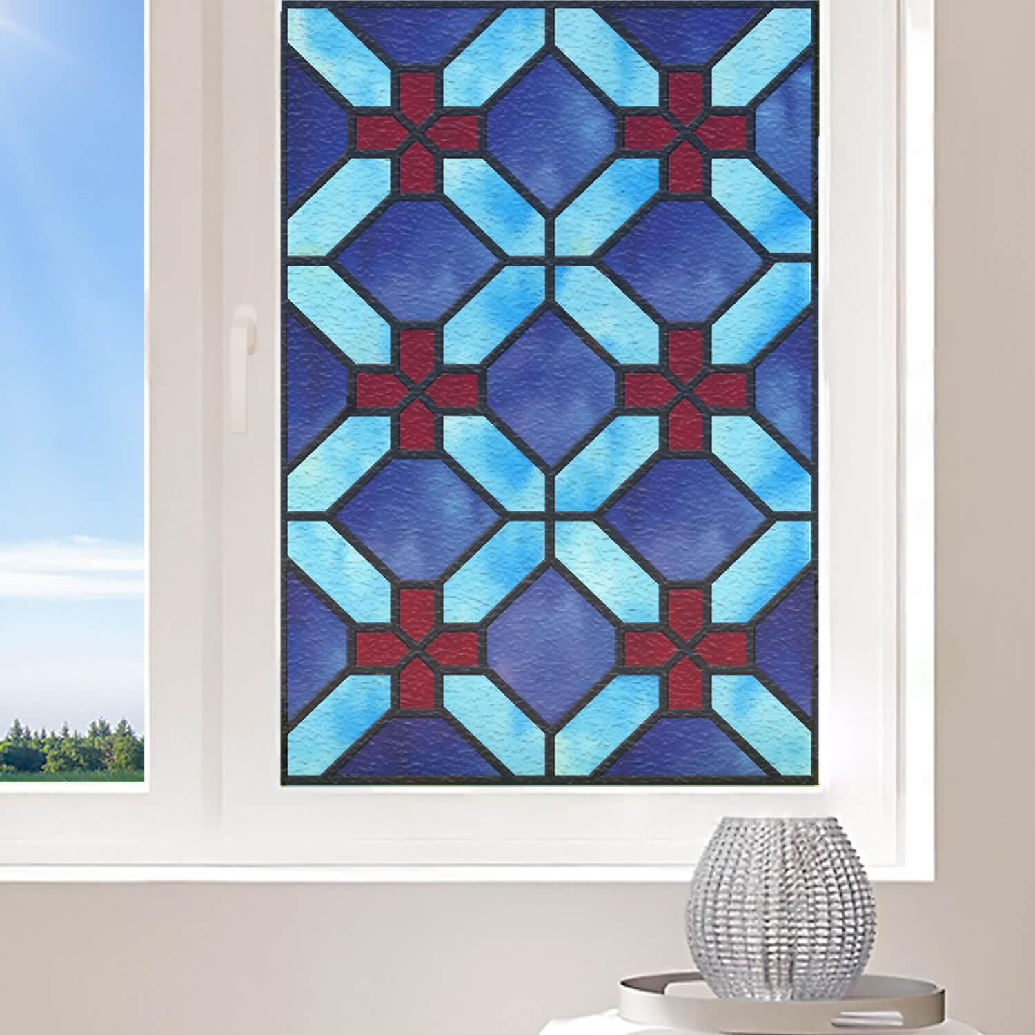 Film électrostatique effet vitrail - croisillons bleus et rouges