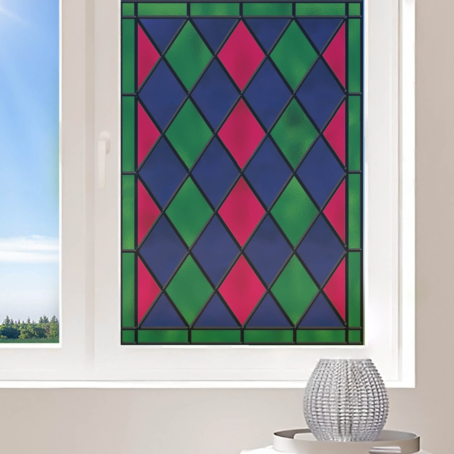 Film electrostatique à Losanges bleus, verts et rouges pour fenêtre, vitre et surfaces lisses.