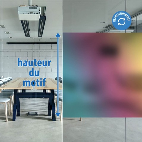 Film repositionnable brillant, coloré. Effet de teintes différentes en fonction de la pose bleu, violet, jaune.