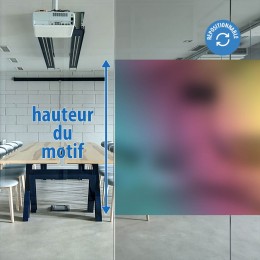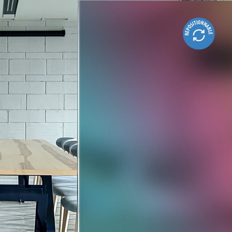 Film statique aux nuances jaunes, violet, bleu. Film repositionnable avec possibilité de le retirer facilement à tout moment. Manipulation et application facile à l?eau claire. Pose côté intérieur du vitrage. L?effet sablé du film permet le passage de la lumière tout en empêchant la visibilité à travers. Solution idéale pour échapper aux regards et protéger votre intimité, le tout en créant une ambiance colorée dan La pose se fait à l'eau clair et non à l'eau savonneuse comme pour un film adhésif. s votre pièce.