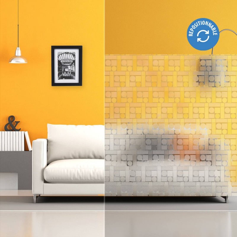 Ce film repositionnable aux motifs géométriques (carrés, ronds, rectangles) propose une alternative intéressante à un film totalement dépoli qui ne laisse pas de place à une certaine transparence comme c?est le cas ici. Ce film permet donc à la fois d?avoir cet aspect anti-regard sans pour autant perdre une vision totale sur l?extérieur. Le tout avec des motifs originaux, modernes et assez discrets. La pose est très simple et rapide sur un vitrage intérieur propre, le tout à l?eau claire. Le film ne reste pas figé pour toujours sur votre vitrage car il est possible de le déplacer à volonté sans perdre d?efficacité.