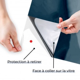 | Conseil d' usage | Retirer la fine pellicule de protection du film vitrage avant la pose. Ne pas appliquer de stickers ou tout autre adhésif sur le film. |