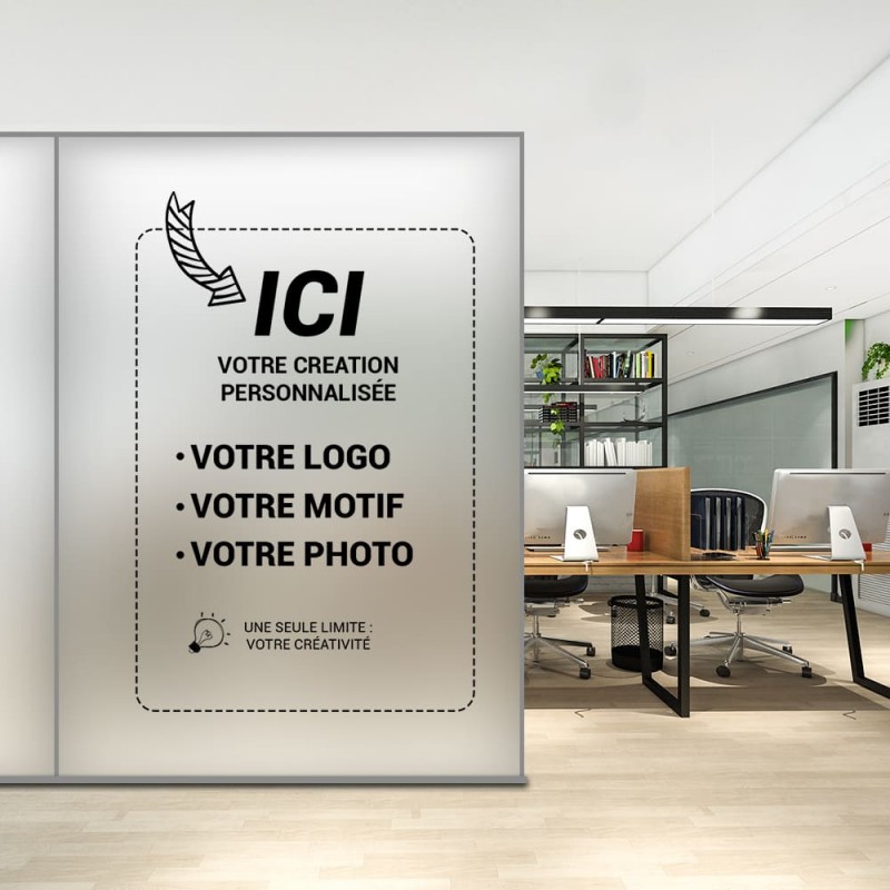 Envie d’intimité et de communiquer grâce à de la vitrophanie ? Décorer votre vitrage à votre image avec ce film dépoli givré personnalisable. Il permet d'avoir une protection totale contre les regards indiscrets. Il sera impossible de voir à travers votre vitrage d’un côté comme de l’autre. L’avantage de ce type de film adhésif est qu’il permet de garder une excellente luminosité intérieure.