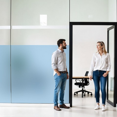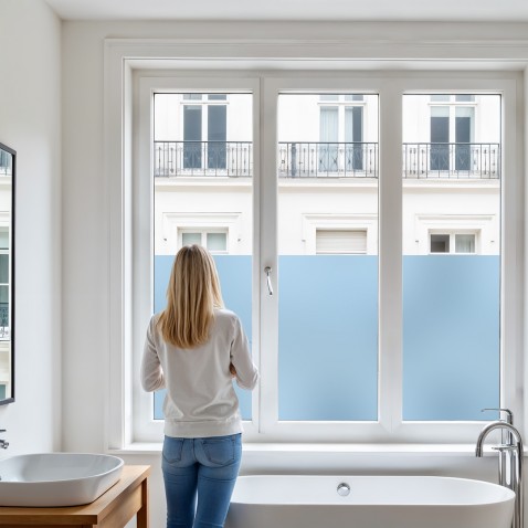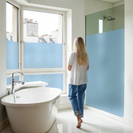 Film dépoli bleu pour fenêtre idéal pour une protection contre le vis-à-vis. Transforme votre vitrage avec un aspect bleu dépoli unique.