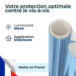 Solution contre le vis-à-vis proche et lointain, le film brise-vue pour vitrage permet de garder une bonne luminosité dans la pièce. Il sera désormais impossible que quelqu'un voit l'intérieur de votre pièce. L'aspect coloré de ce produit offre une alternative intéressante au dépoli blanc plus commun.
