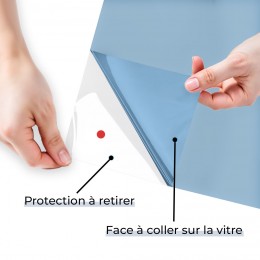| Conseil d' usage | Retirer la fine pellicule de protection du film vitrage avant la pose. Ne pas appliquer de stickers ou tout autre adhésif sur le film. |