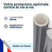 Le film dépoli adhésif permet de se protéger des regards indiscrets grâce à un effet floutant. Le dépoli est efficace contre un vis-à-vis proche et lointain. Si beaucoup font le choix du film dépoli adhésif, c'est parce qu'il conserve la totalité du passage de la lumière. Il offre donc une protection contre les regards indiscrets tout en laissant une bonne luminosité dans la pièce.