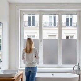 Film dépoli gris pour fenêtre, idéal pour une protection contre le vis-à-vis. Transforme votre vitrage avec un aspect gris dépoli magnifique.