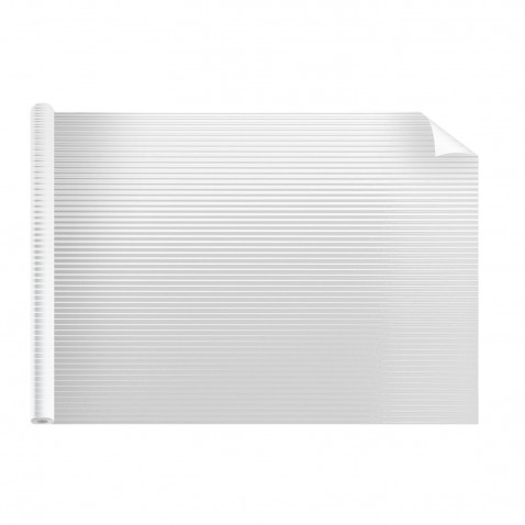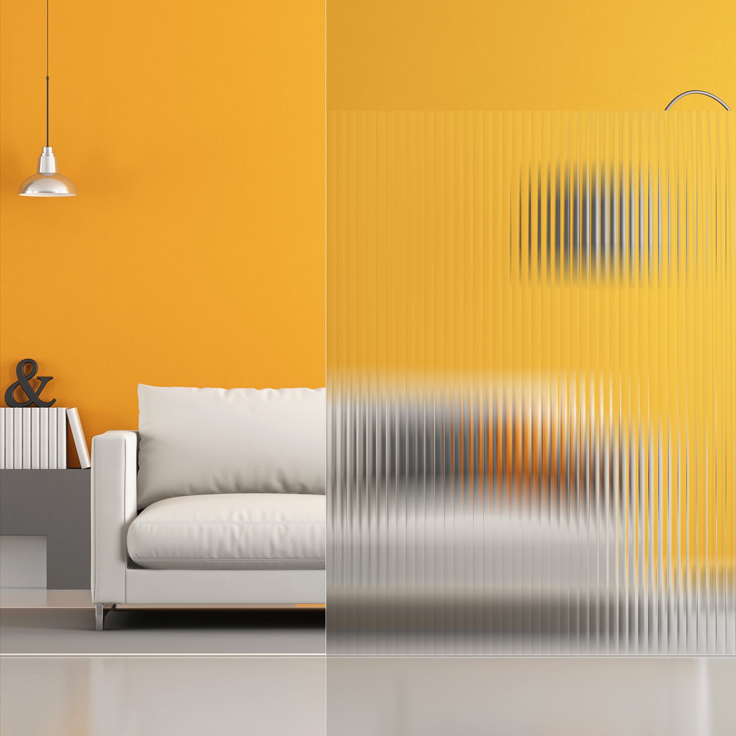 Le film décoratif effet verre strié imite parfaitement le verre flûte avec ses bandes verticales régulières. Il crée un jeu de lumière subtil et déformant qui rehausse le style de vos surfaces vitrées. Idéal pour ajouter une touche élégante et moderne à vos espaces.