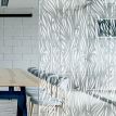Le motif aquatique, avec ses algues de tailles variées, remplit harmonieusement l'espace, créant un effet de mouvement naturel. Disponible en hauteur de 152 cm et en longueur jusqu'à 30 mètres, il s'adapte à toutes vos surfaces.