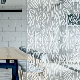 Design moderne : Avec son motif d'algues aquatiques transparentes sur un fond dépoli, ce film apporte une touche de fraîcheur et de mouvement à vos surfaces vitrées.