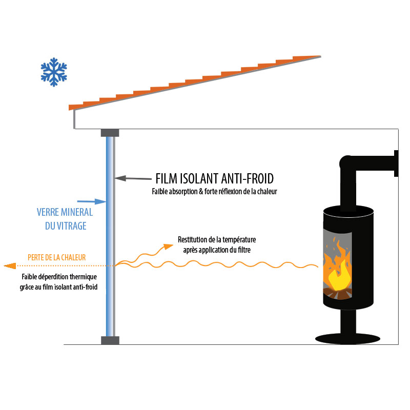 Le filtre anti-froid agit également contre la canicule, il protège des températures extérieures en réduisant considérablement le passage de l’énergie solaire. Il rejette jusqu’à 66 % des rayons infrarouges permettant ainsi de sensibles économies de climatisation et de ce fait, un gain financier sur nos factures.