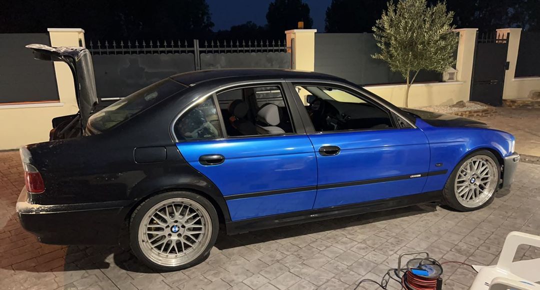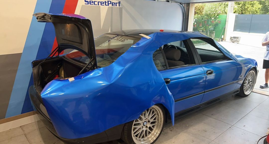 Voici la première réalisation de l'un de nos clients sur sa BMW avec du covering auto bleu