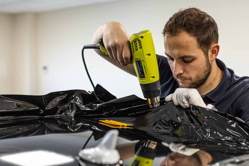 Ce que l’on dit à tous nos clients et que les professionnels de la pose de covering voiture confirment, une grande part de la réussite de votre covering repose sur le matériel et l’environnement. Pour ce qui est de l’environnement de la pose, nous conseillons un espace abrité du vent et des poussières afin de limiter les risques de bulles lors de votre pose. Il est primordial de bien nettoyer la carrosserie avant la pose de votre covering. Au niveau du matériel, un covering bas de gamme est plus sensible et se déchire plus rapidement qu’un film haute qualité épais comme ici (100 microns).