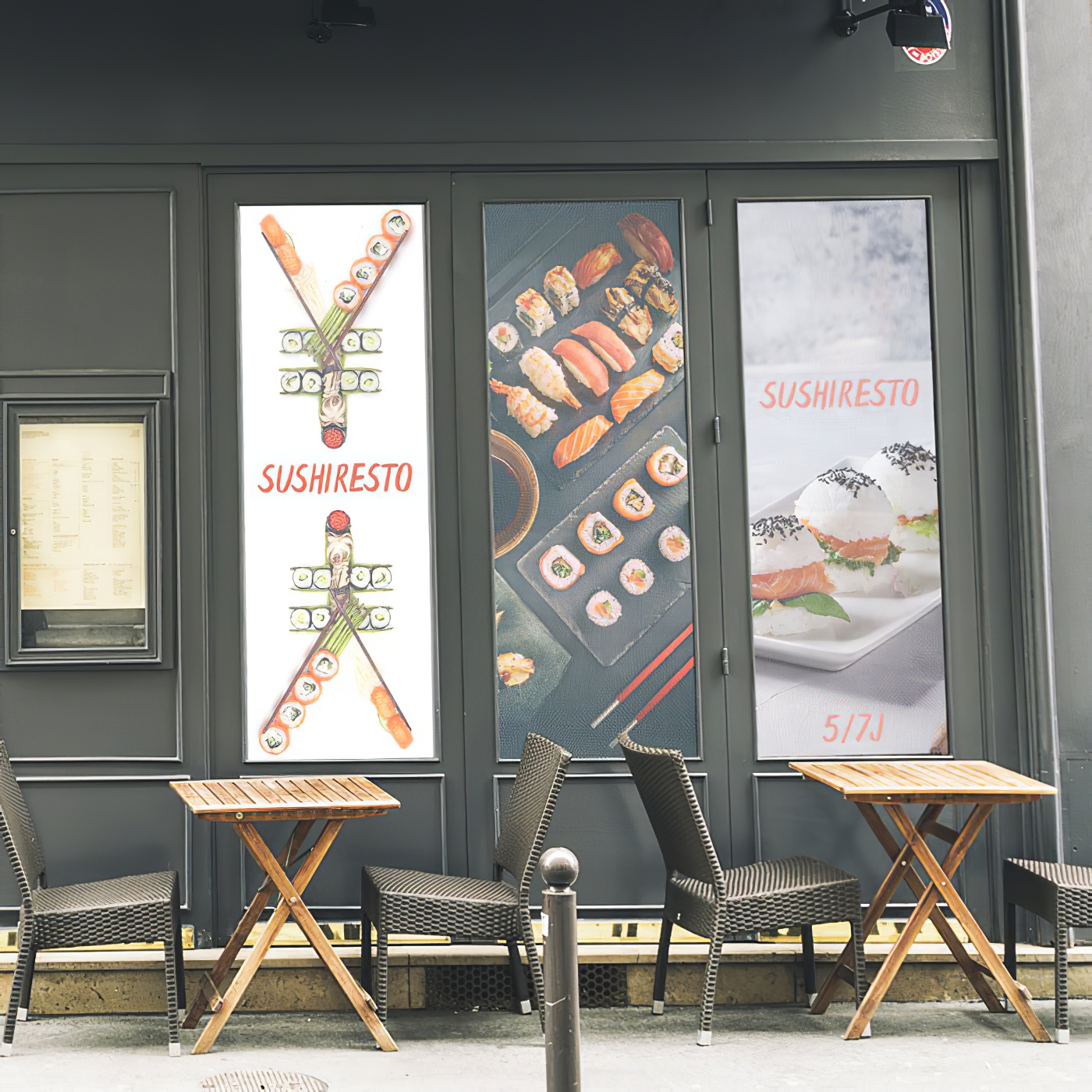 Selon vos besoins, découvrez l’impression sur film transparent, dépoli ou coloré et affichez sur votre vitrine une communication efficace.